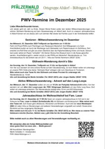 Werde Mitglied beim Pfälzerwald-Verein und in unserer Ortsgruppe. Im Mitgliedsbeitrag ist die vierteljährliche Lieferung der Zeitschrift "Pfälzerwald" enthalten und es gibt Vergünstigungen auf fast alle Artikel im PWV-Shop. Außerdem informieren wir regelmäßig zu unseren Ortsgruppen-Terminen und Veranstaltungen.